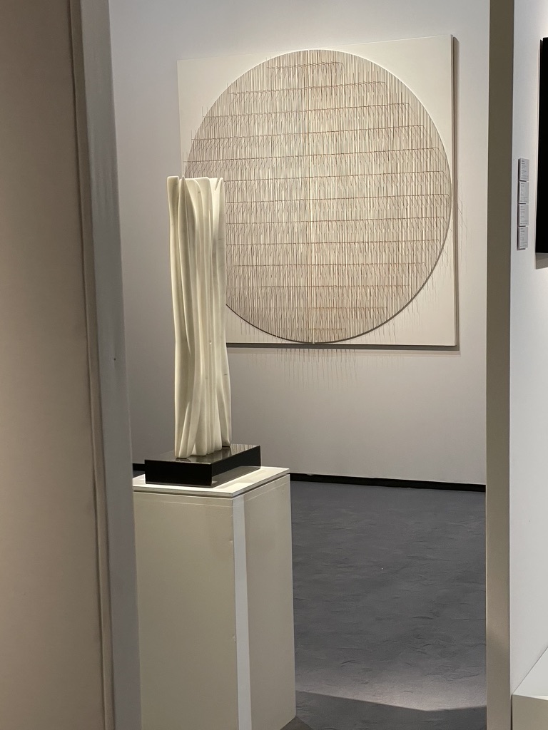 I always enjoy spending time at Axel Vervoordt’s stand. This year I felt especially close to the works of Jef Verheyen, Atelier Pierre Culot, and Günther Uecker. Verheyen’s paintings are about light, but also about patience. You have to give them time, and they give something back. Pierre Culot’s ceramics are so honest, made from the earth and still carrying it with them. And Uecker’s nail works repetitive, quiet, almost obsessive have a rhythm that slows you down. Together, they made the stand feel like a place you could stay in for a while.